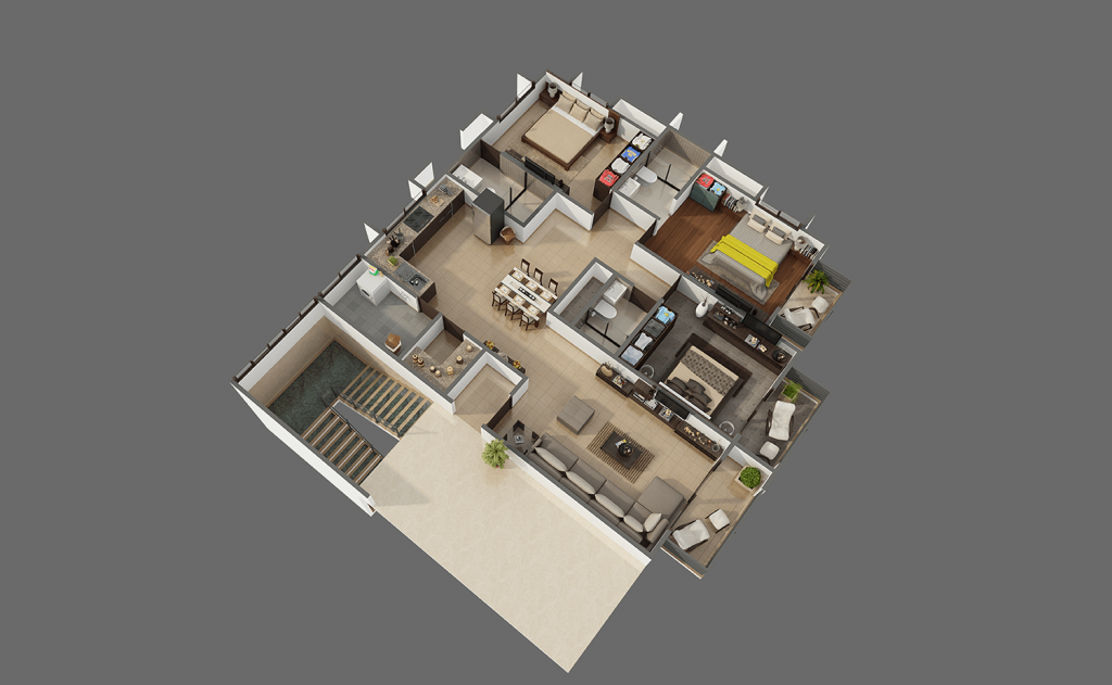 • Living room, Dining, Kitchen Area: 800x800mm vitrified tiles